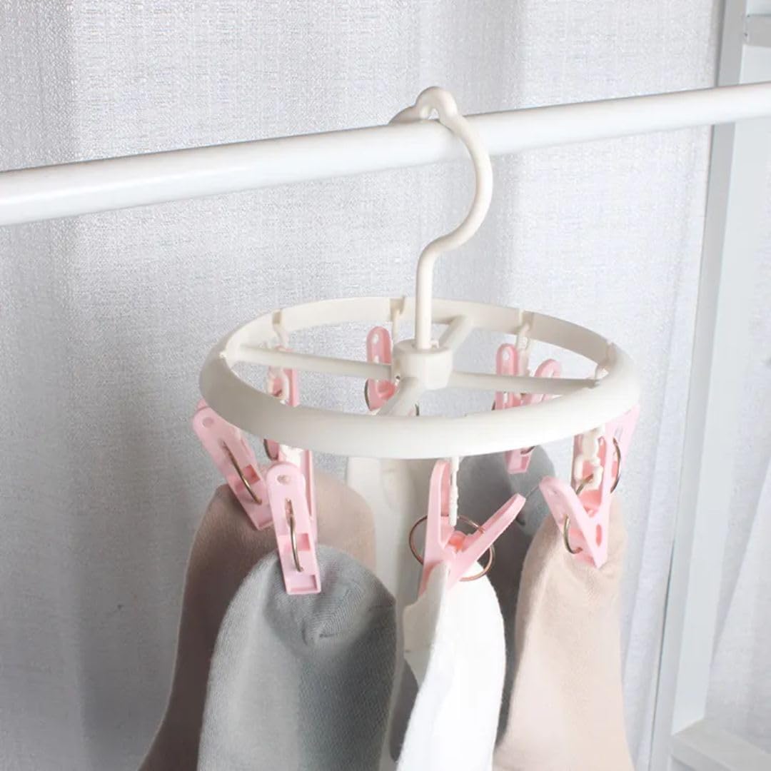 - COMPACT DESIGN: Round hanging drying rack with 8 sturdy clips, perfect for small spaces and indoor/outdoor use